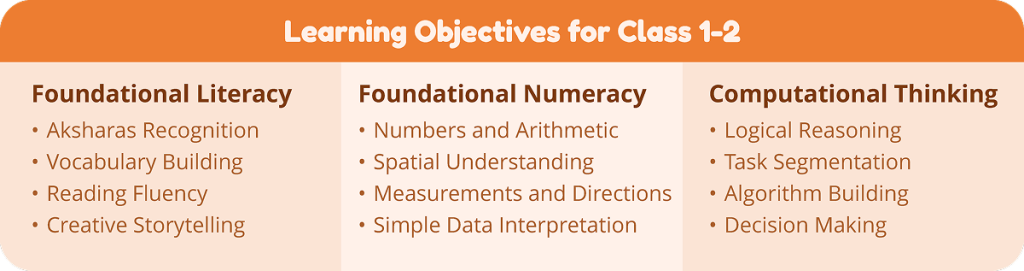 The curriculum is designed in grade-wise progressive activities to teach the FLN and CT to kids while introducing the complex concepts to the students in the classroom.