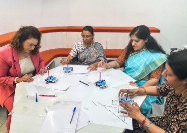 The program includes a robust Classroom Pack of Wizbot Toy Robots with several TLMs (Teaching Learning Materials) like activity posters and workbooks, gamified arenas and many more things like picture and coding cards, brush pens, and spares that make the session fun and engaging. It also includes a dedicated Teacher’s Wizbot Kit and Teacher’s Handbook for making the session fun and engaging.