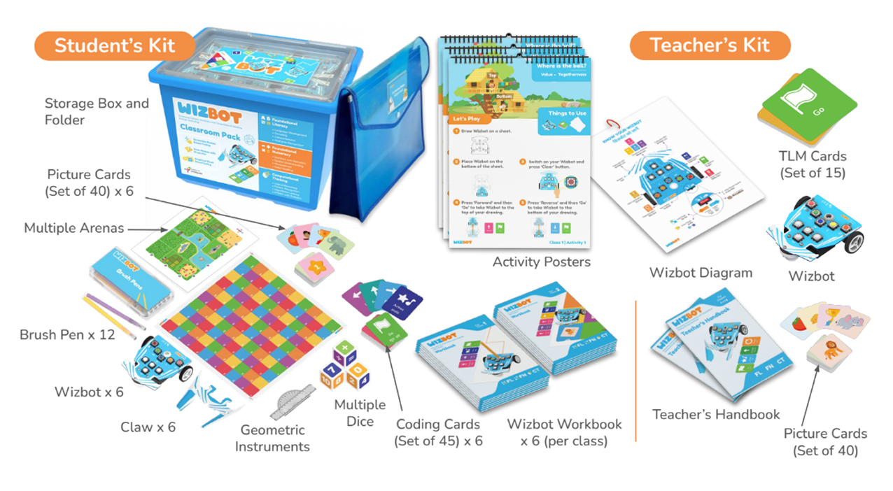 The Wizbot Classroom Pack for Classes 1 to 5 includes: